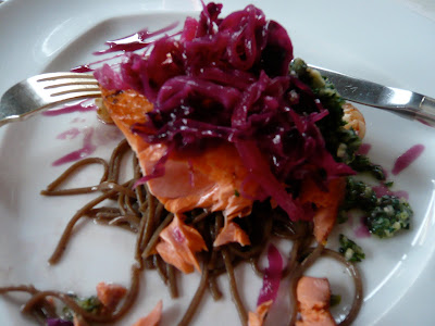 I ate this dish recently at a restaurant and the flavors were so well drawn. Soba noodles tossed in a mild but delicious Asian flavors, cilantro-mint pesto, seared wild Alaskan King Salmon, topped with a lightly savory-sweet, mildly pickled red cabbage slaw. At first I thought there might be too many elements (enough anyway that… View Article