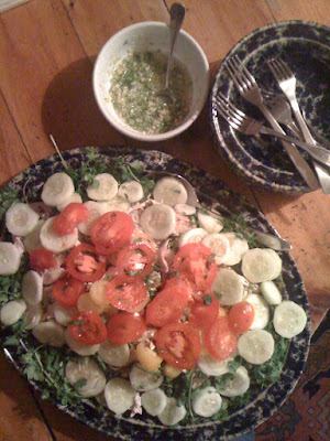 Here’s that crunchy, dry, cold lettuce I’m talking about (see 9/24/09 post): at the ready in the fridge. Green Goddess Dressing from MH cookbook, served in spears for dipping. Just when I think the tomatoes are history, a few more ripen on the vine. Once again and this time with feeling, what else?, meat and… View Article