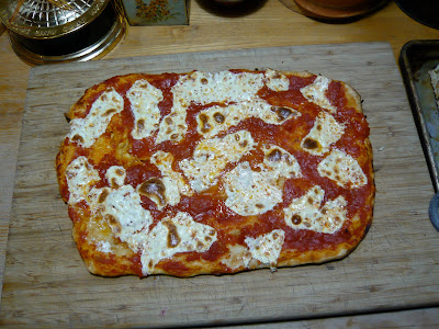 At his pizza restaurant Company http://www.co-pane.com/, one is assured top quality pies as only an imported Italian bread oven can give you. His “Popeye” pizza–tomato pie piled high with fresh spinach and baked feels almost virtuous but–the “fat pizza” (as we like to call it)–bacon, onion, cheese and cream (I think) is practically impossible to eat only one slice of. So, back home where my simple oven can’t compare and my dough seemed a little stiff, we still managed to eat a few good homemade pies.