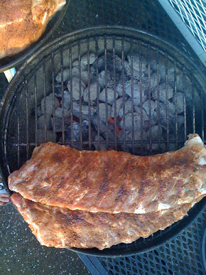 If you ever want to try a REALLY good dry rub for ribs, check this out: 1C Sugar1/2C Sea Salt2T Paprika2T Ground red pepper (not too hot.. 30sc unit)1T Ground Celery Seed1T Ground Cumin Mix the sugar and sea salt together first.. make sure it's well mixed. Add all the other ingredients and mix well. Rub both sides of the ribs with the dry rub mixture and allow to set for appx. 15 minutes before placing on the grill. As the ribs cook, it will get a great crust (thanks to the sugar) and the flavor is out of this world. This rub recipe is from Gates BBQ in Kansas City.. (and via podcast from Martha)