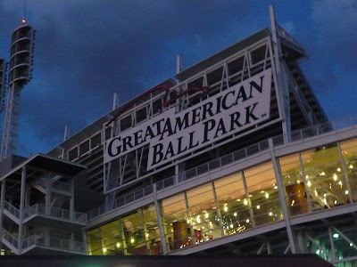 Arrived in Cincinnati with a couple rare hours to spare which meant my traveling companion AKA all around explorer took us to the Art Museum which was closed so we ended up at the Serpentine wall along the Ohio river. See, I wear clogs for cooking–not for walking or pseudo-hiking yet he had us on a long river walk, clogs and all. We walked past the river boat, crazy Whistle Stop audio sculptures and ended up at the John A. Roebling bridge, formerly known as the Cincinnati-Covingtone Bridge (at its building the longest suspension bridge ever made) and notable to us a bridge also designed by the man who designed the Brooklyn Bridge. We ended up at Riverfront Stadium before heading back to the hotel, where–reluctant as I was to dine in at the hotel restaurant, The Palace, was amazed by the meal from former Thomas Keller alumn, Jose Salazar formerly of Per Se and Bouchon Bakery. Every detail of the meal was superb from the bread to the Chicken and Dumping soup (signature Keller, reconstructing a comfort food fav) and the pork, with bacon and maple mustard bread pudding and braised red cabbage. So good. But, we hurried through dessert as the Yankees beckoned.